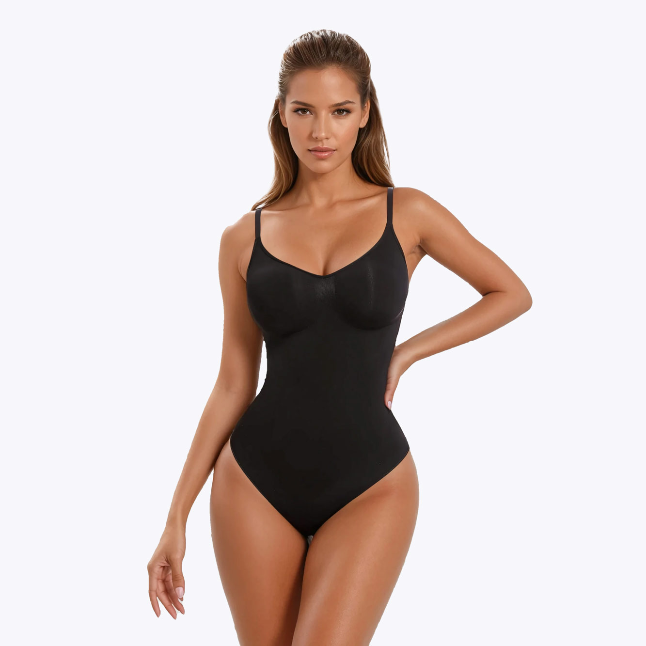 Bodi koji snažno oblikuje stomak i struk ciljano tamo gde vam je najpotrebnije. Podesive bretele drže sve na mestu bez spuštanja.